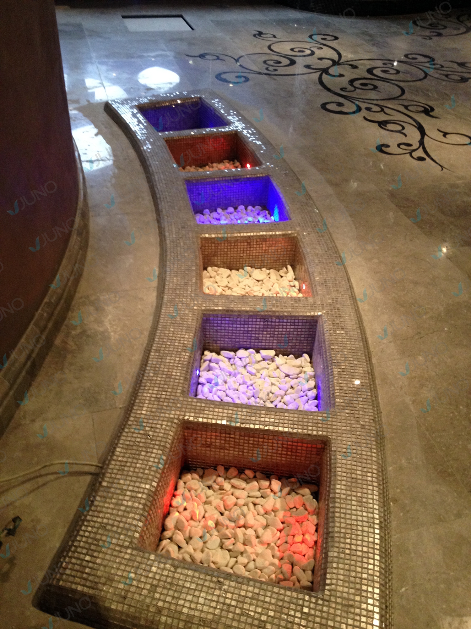 Kneipp Havuzu Tasarım ve ÜretimiKneipp havuzu yani ayak masajı sistemleri tasarımı ve üretimini İstanbul'da bulunan üretim tesisimizde gerçekleştirmekteyiz. Kneipp havuzu yapımı ustalık isteyen bir husustur, Juno Spa firması olarak bugüne kadar tamamladığımız çok sayıdaki spa & wellness projesinde kneipp sistemini tasarlayıp üretimini yaptık.